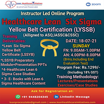 The knowledge of Healthcare Lean Six Sigma is highly essential for any Healthcare Professional. This Healthcare Lean 6 Sigma program covers the five phases of 6 Sigma Process Improvement Methodology namely, Define(D), Measure(M), Analyze(A), Improve(I) and Control(C) popularly known as DMAIC methodology of 6 Sigma clubbed with the applied Lean Tools for performance improvement through waste elimination.